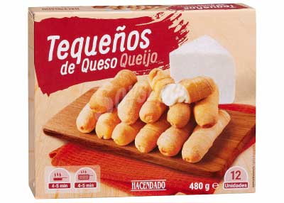 Los tequeños de Mercadona son un producto congelado que vas a poder encontrar en las neveras de aperitivos congelados y se presentan en un estuche de cartón en el que vienen 12 unidades. El precio de los tequeños congelados de Mercadona es 4,90€ (mayo 2024) y el peso del producto es de 480 gramos. El relleno de los tequeños de Mercadona es queso fundente de leche de vaca.
